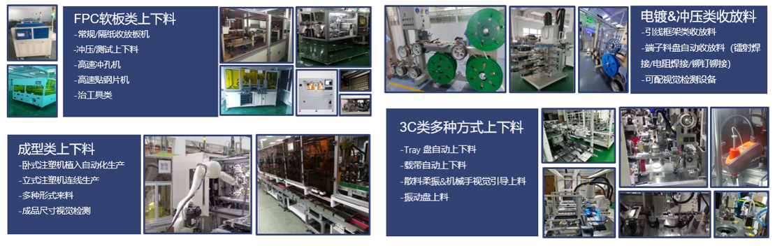主營高標(biāo)準非標(biāo)定制設(shè)備,3C、電鍍、沖壓、FPC、成型等多行業(yè)上下料設(shè)備,視覺類軟硬件設(shè)備,并提供相關(guān)技術(shù)支持和整套解決方案。